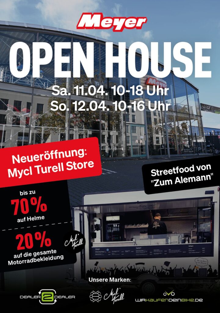 Niedergelassen in Aachen mit Werkstatt und Showroom auf einer Fläche von über 2500m² ist die Motorrad Meyer GmbH & Co. KG seit 1960 DER Fachhändler für Motorräder, Zubehör und Motorradbekleidung.